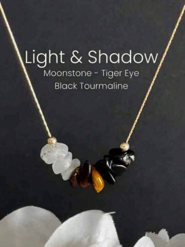 Beautiful Light and Shadow Moonstone Tiger Eye Black Tourmaline necklace to help with hormone balance.