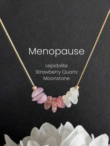 Beautiful Menopause Leopidolite Strawberry Quartz Moonstone necklace to help with hormone balance.