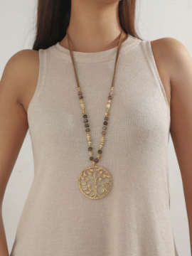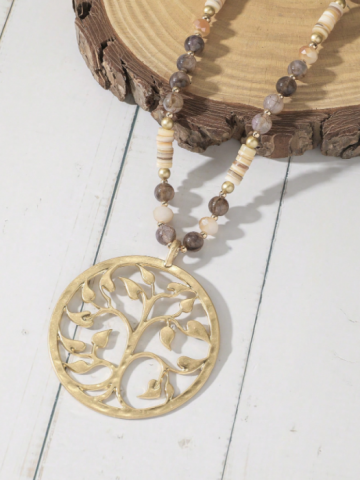 Beautiful Tree of Life Beaded Metal Necklace. Add a statement to any outfit.