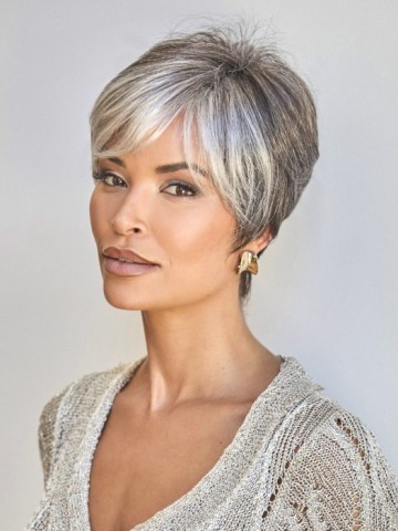 Eva by Noriko is a poised pixie featuring a modern swept fringe and soft tapered nape.