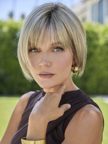 Meadow Wig by Noriko is a bob cut with a feathery bang. This basic cap wig has tapered layers that accent the jawline gracefully. With a medium density, this style's layers hug the nape to keep your neck cool all day.