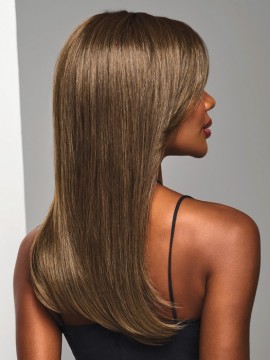 Long, silky strands and a modern curtain bang exude confidence and elegance. The smooth texture and natural shine give this style instant impact. We’ve kept it simple so you can bring the drama.