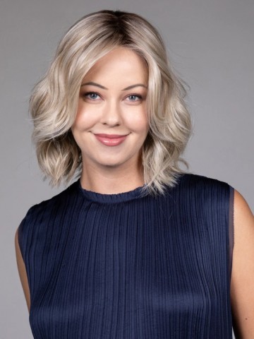 Experience the perfect blend of style and comfort with Olivia, a chic shoulder-length wig featuring soft, tousled waves and wispy bangs that frame your face with youthful charm. Its extended lace front creates a natural hairline, while the full monofilament top allows versatile parting for a realistic look. The hand-tied cap with hidden wefts ensures lightweight comfort and natural movement, making Olivia ideal for daily wear or special occasions. Adjustable velcro straps provide a secure fit, so you can feel confident and radiant wherever you go.