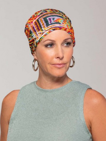 The classic Softie cap with a new, elegant design element. Made from the ultra soft Bamboo Viscose, this softie will remain warm in the winter and cool in the summer. Double bamboo lining protects against stitching rubbing against the skin. Provides full head coverage for those experiencing total hair loss. Available in solid colors and prints.