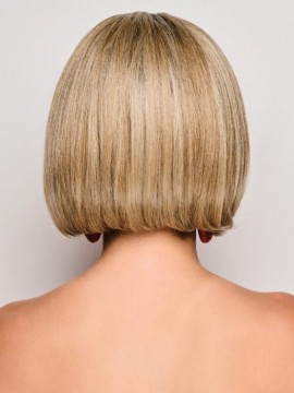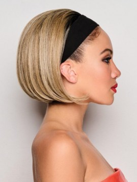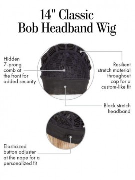 This is the 14" Classic Bob Headband Wig by Kim Kimble. Easy to wear, always in fashion! This sassy, swing bob is actually a headband wig that slips on in seconds for an instantly stylish look. Position behind or over your front hairline. The classic black stretch headband has a hidden 7-prong comb at the front for added security and an elasticized button adjuster at the nape to personalize the fit.