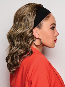 This is the 18" Wavy Waves Headband Wig by Kim Kimble. The layered loose waves of this headband wig are just the thing when you’re running late and need to look great. So simple to slip on and so stylish!