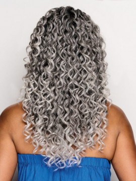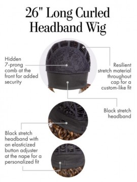 This is the 26" Long Curled Headband Wig by Kim Kimble. Ready in no time and ready for anything! Are you ready for this? Long, lush layers of big, spiraled curls are giving glam and unstoppable fabulousness. Position behind or over your front hairline. The classic black stretch headband has a hidden 7-prong comb at the front for added security and an elasticized button adjuster at the nape to personalize the fit.