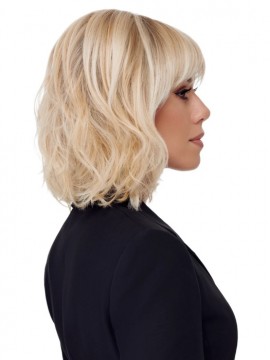 The New Wave Wig by TressAllure is a long, mid-length layered bob with feathered bangs, a smooth silky top and textured layers that fall below the collar. This slightly longer bob blends multi-textures with contoured layering for a lightweight feel and plenty of volume. The flowing sides frame the face perfectly.