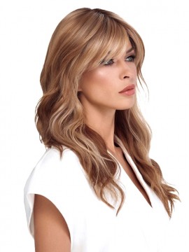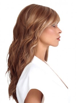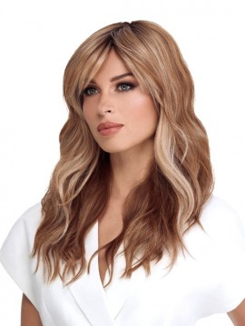 This is California Beach Waves Wig from Tressallure. Long layers of shaped beach waves that tumble below the shoulder with feathered bangs, a smooth silky top, and a Sheer Comfort Mono Top Lace Front cap that is designed with a sheer monofilament top and lace front for an undetectable hairline and all-day, every-day comfort. This longer shag blends multi-texture and contoured layering for a lightweight feel and plenty of volume without any bulk and flowing sides that perfectly frame the face.