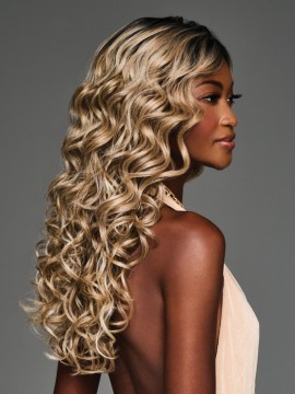 Ultra-long, ultra-glam, LAILA exudes top model energy with soft, mermaid waves that fall to mid-back. Her full monofilament top makes the look flawless from every angle and allows you to part wherever you like. Flat iron smooth for a new take on her angelic aesthetic.