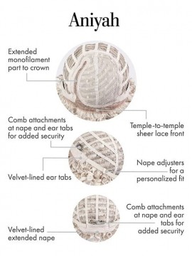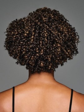 ANIYAH is a soulful dream girl with her sassy coiled curls. Wear straight out of the box or pick it out for maximum fullness. Volume at the top and sides tapers into a subtle diamond shape. Designed with a monofilament part for the illusion of hair growing directly from the scalp.