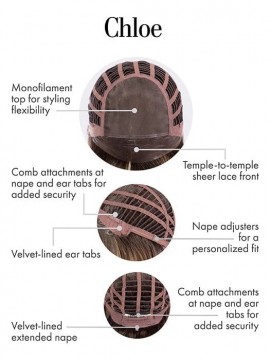 Every day is a great hair day when it begins with the beautiful CHLOE. She’s a smart, textured shaggy look with razor cut pieces throughout and a sultry eyelash bang. But the real news story is her full monofilament top that has natural movement and the ability to part where you like.