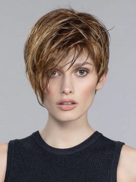 Disc by Ellen Wille is a short, asymmetrical boy cut with a soft, tapered neckline and angled fringe. This modern short wig features a monofilament left-side part, and is ideal for a petite to average head size. The density of the ready-to-wear synthetic hair looks more like natural hair and requires little to no customization or thinning. Disc is part of the Ellen Wille Hair Power collection.
