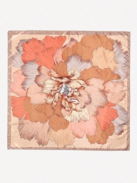 Beautiful fashionable silk feel scarf/bandana in a lovely coral, beige, light taupe and camel floral print.