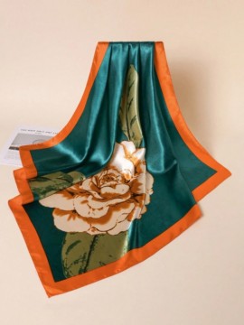 Beautiful fashionable silk feel scarf/bandana in gorgeous rich green and white floral pattern with orange trim.