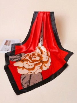 Beautiful fashionable silk feel scarf/bandana in gorgeous stylish red floral print with black trim.