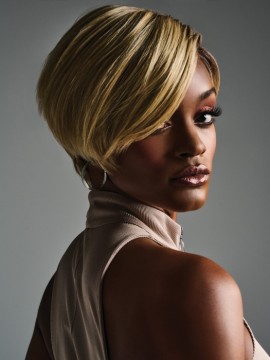 Part businesswoman, part diva, JAYLA is the asymmetrical short cut that unapologetically represents with good girl/bad girl vibes in one sleek style. From the edgy, long side-swept bang to the shattered textures and tapered nape, she’s a risk taker and never backs down.