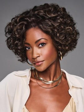 Voluminous spiral curls cropped in a unique shape makes TIERRA the kind of charismatic, center-of-attention style destined to be your new signature look. Stacked fullness at crown and sides tapers at the nape creating a chic V-shape that’s weighted above the ears.