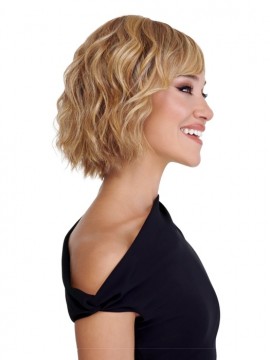 Trend by TressAllure is a light density silky layered bob with a very slight wave, falling just below the collar and will part anywhere. The Style-Able Effortless™ fiber matches the density of fine human hair and the cap is double knotted by hand into a lace monofilament top for an undetectable hairline.