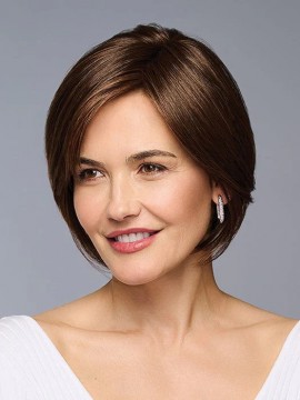 Top Billing 8” by Raquel Welch from the Transformation Collection is the shorter version of best-seller Top Billing. The monofilament base, combined with the sheer lace front, gives the illusion of hair growth for a natural look. Featuring 8 inches of heat friendly synthetic fiber, this short topper blends in with chin-length hair.